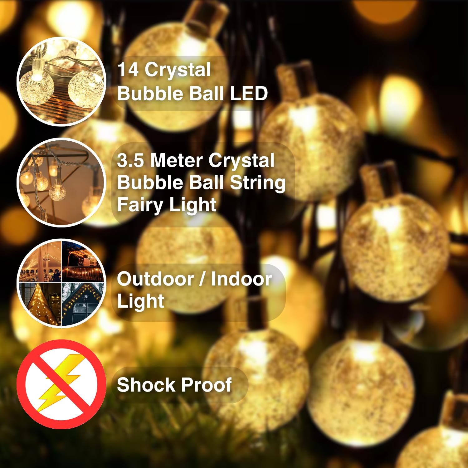 Elegant Crystal Ball Design: Features 14 mini crystal ball-shaped LED lights that add a sparkling, decorative touch to any space.