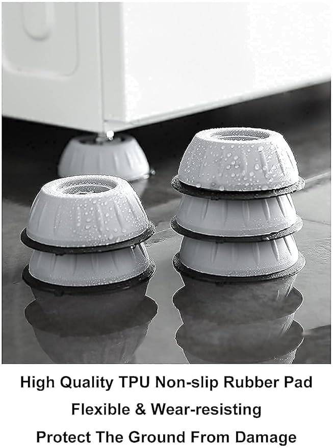 Position these anti-vibration pads under every foot of your washer or dryer to greatly reduce vibration noise. Have a quieter laundry experience while safeguarding your family from the long-term impacts of excessive noise exposure. - Protect Your Floors