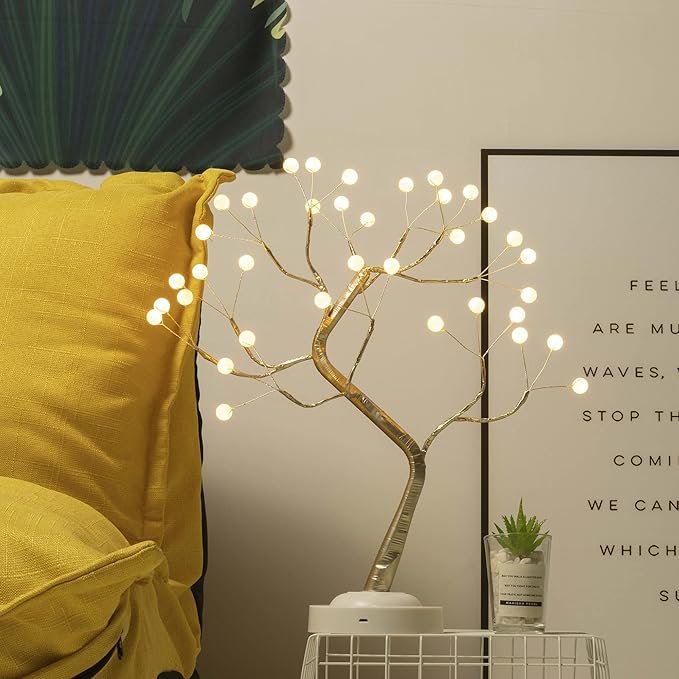 - Features a beautiful artificial bonsai tree design with 36 glowing pearl-like LED lights.