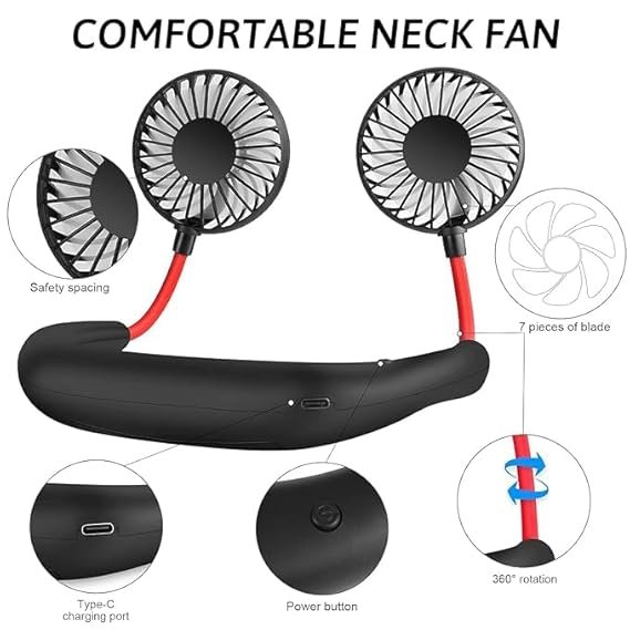 - Hands-Free Neck Fan –Stay Cool Anytime, Anywhere Designed for ultimate convenience, this wearable neck fan sits comfortably around your neck like a pair of stylish headphones, keeping your hands free while providing a refreshing breeze. Its lightweight & ergonomic design ensures all-day comfort without straining your neck, making it the perfect cooling companion for hot weather.