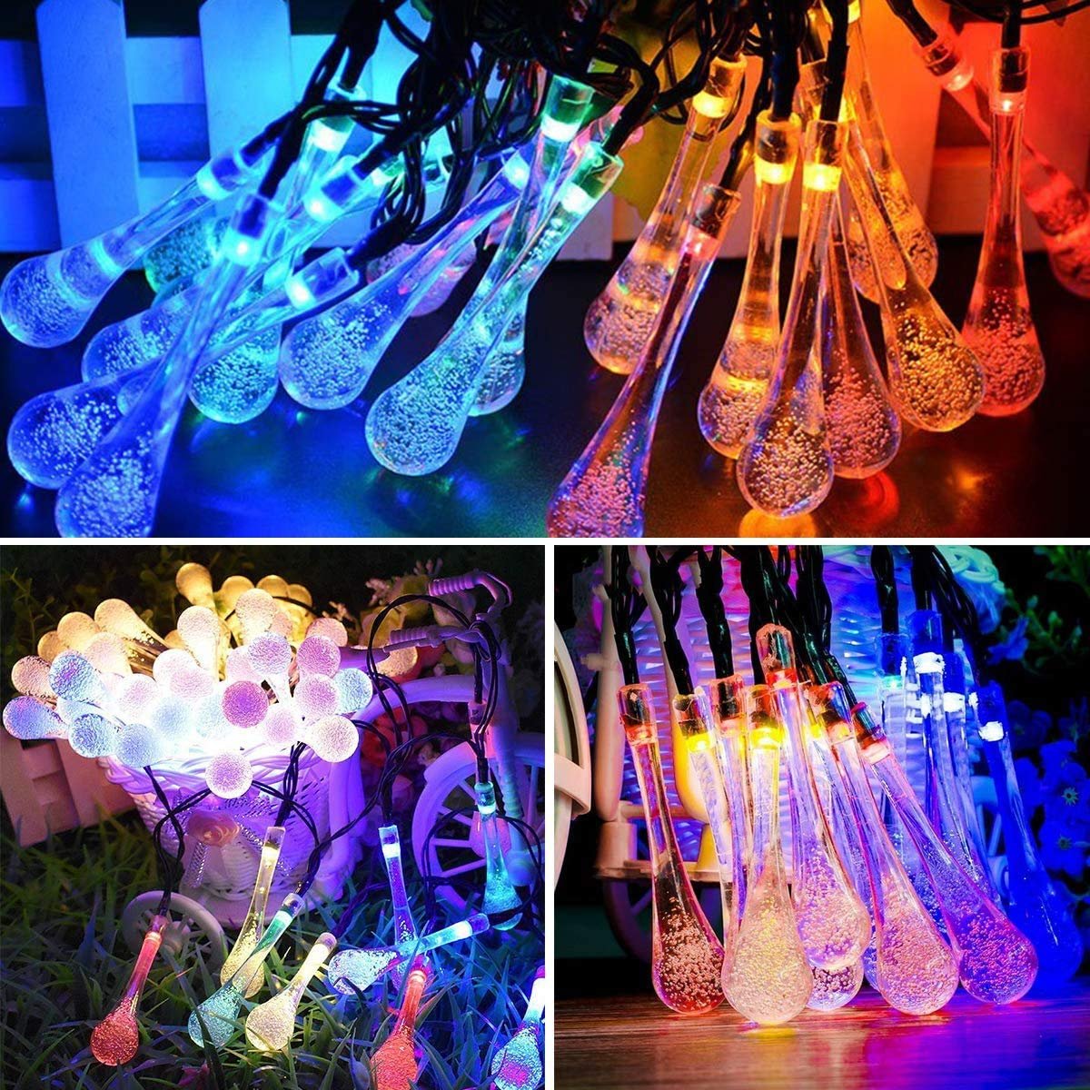 - Unique water drop-shaped LED bulbs create a soft, elegant glow.