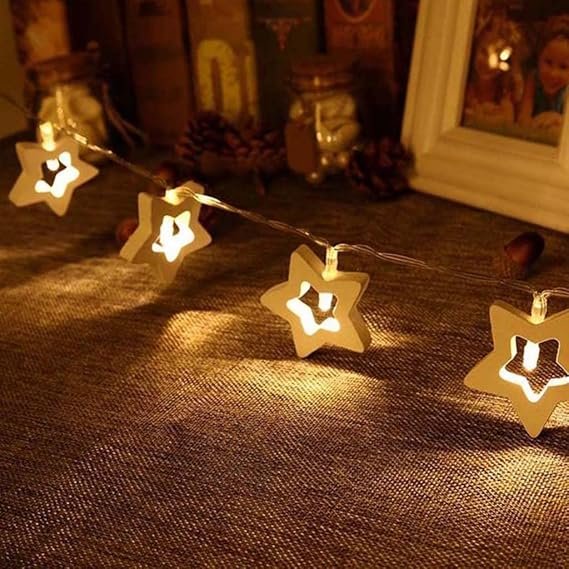 ⭐ Charming Wooden Star Design: Features cute wooden star-shaped covers that bring a warm and rustic touch to your decorations.
